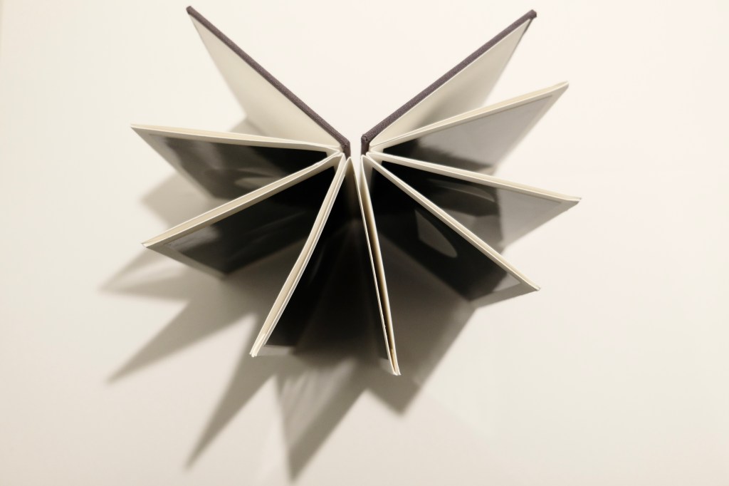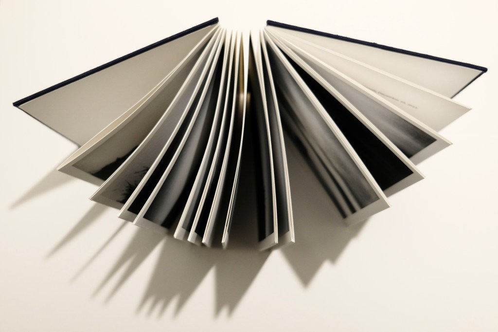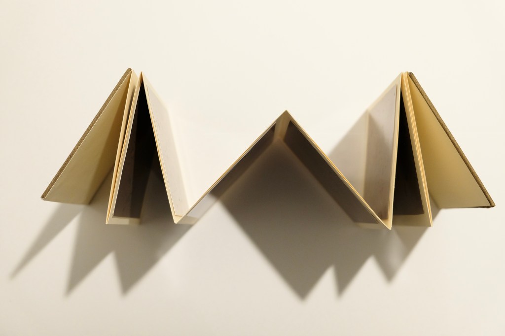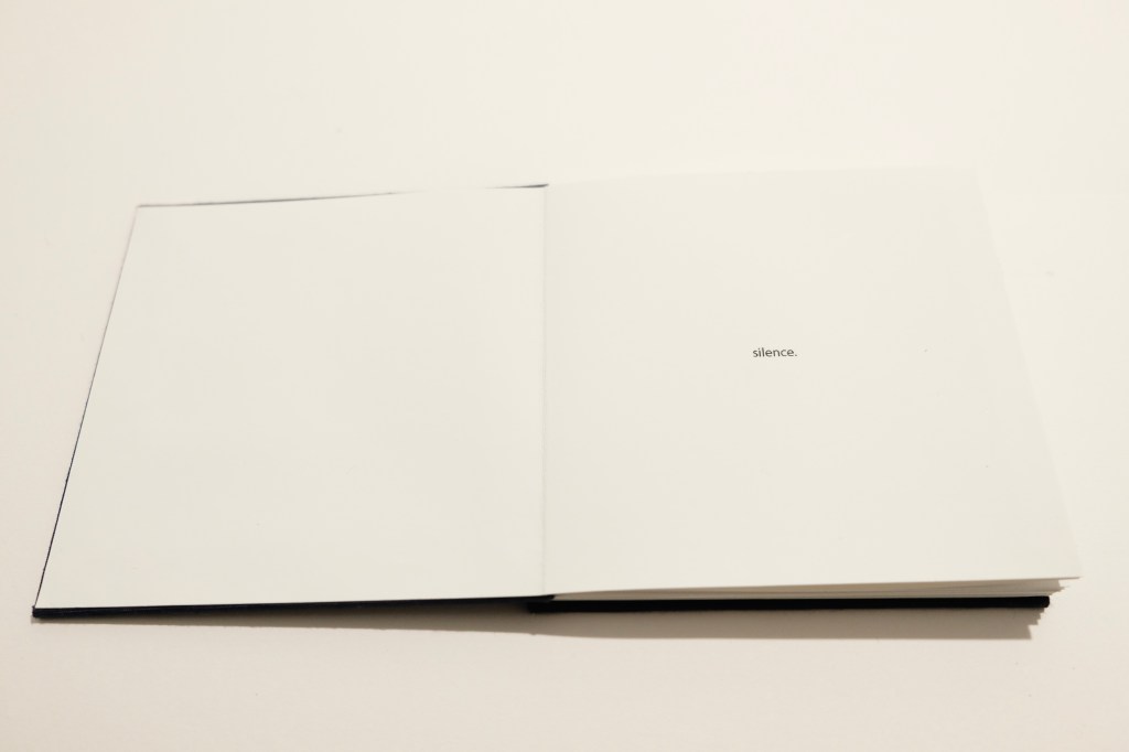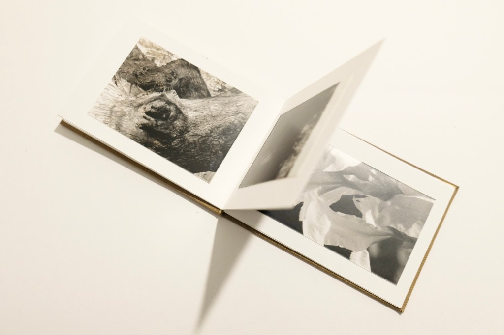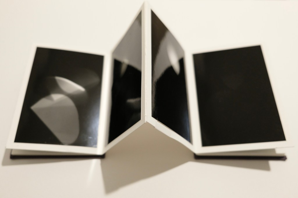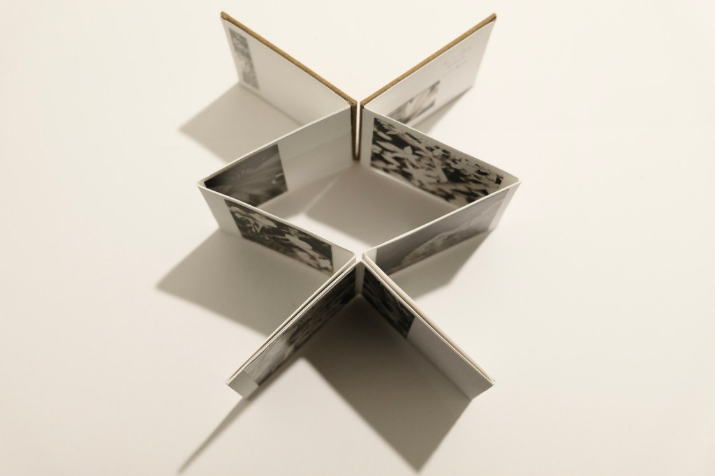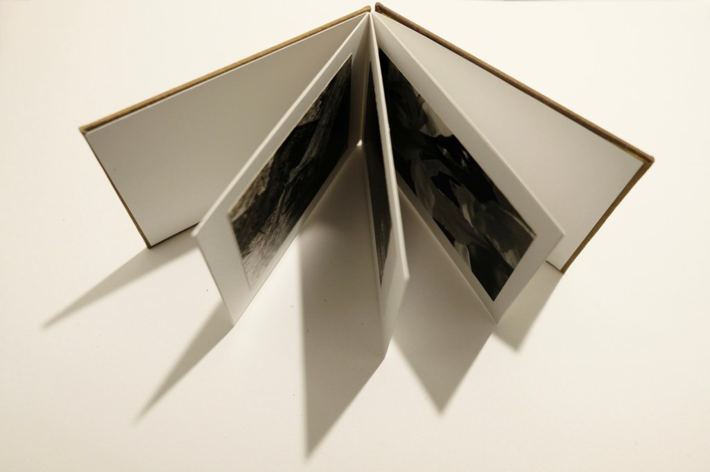 Silence, 2024 — hand-crafted, hardbound, accordion style, 12 pages, 9 images printed on Hahnemuehle archival inkjet paper, edition of 3 + 1 AP, 4.5 x 4.5 inches.
