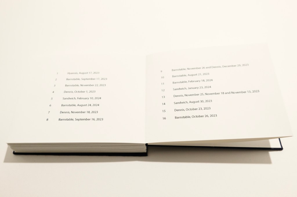 Onshore, 2024 — handmade, hardbound, leporello style, 8 pages, 16 unique gelatin silver lumen prints tipped in, card stock, unique, 5.5 x 4 inches.