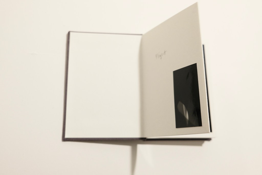 Flight, 2024 — handmade, hardbound, accordion style, 14 pages, 14 unique gelatin silver photograms tipped in, Hahnemuehle archival paper, unique, 5.5 x 3.5 inches.