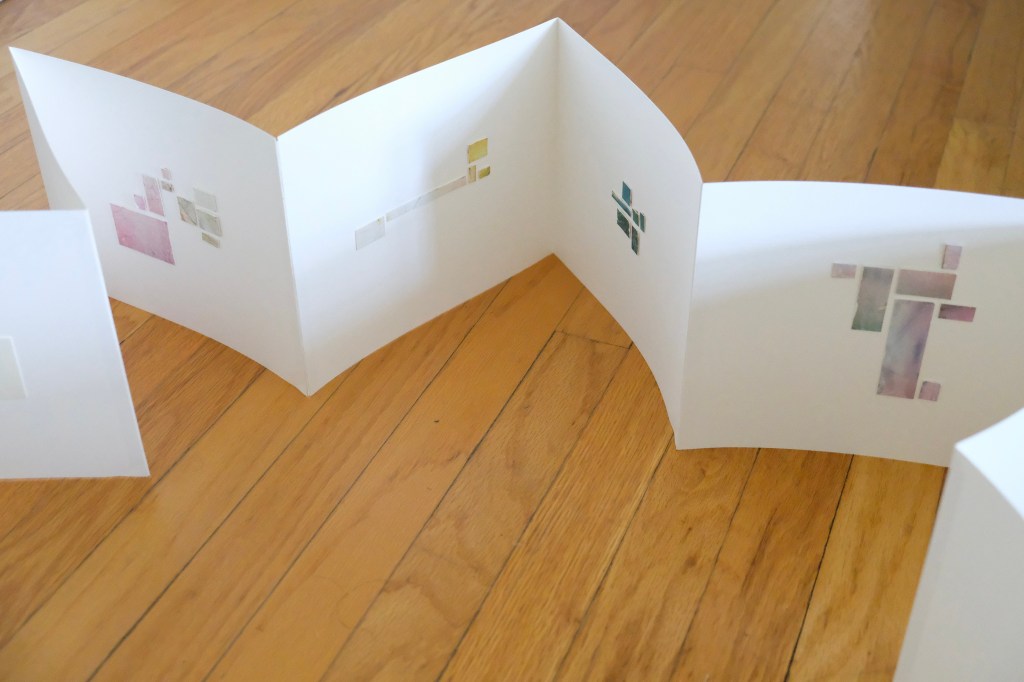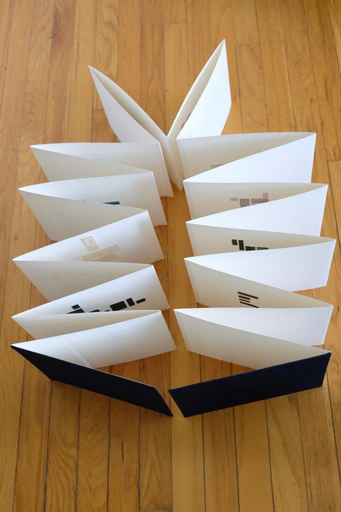 29, 2024 — handmade, hardbound, leporello style, 8 pages, 18 unique gelatin silver test prints (from 1998) tipped in, Hahnemuehle archival paper, unique, 4.5 x 4.5 inches.