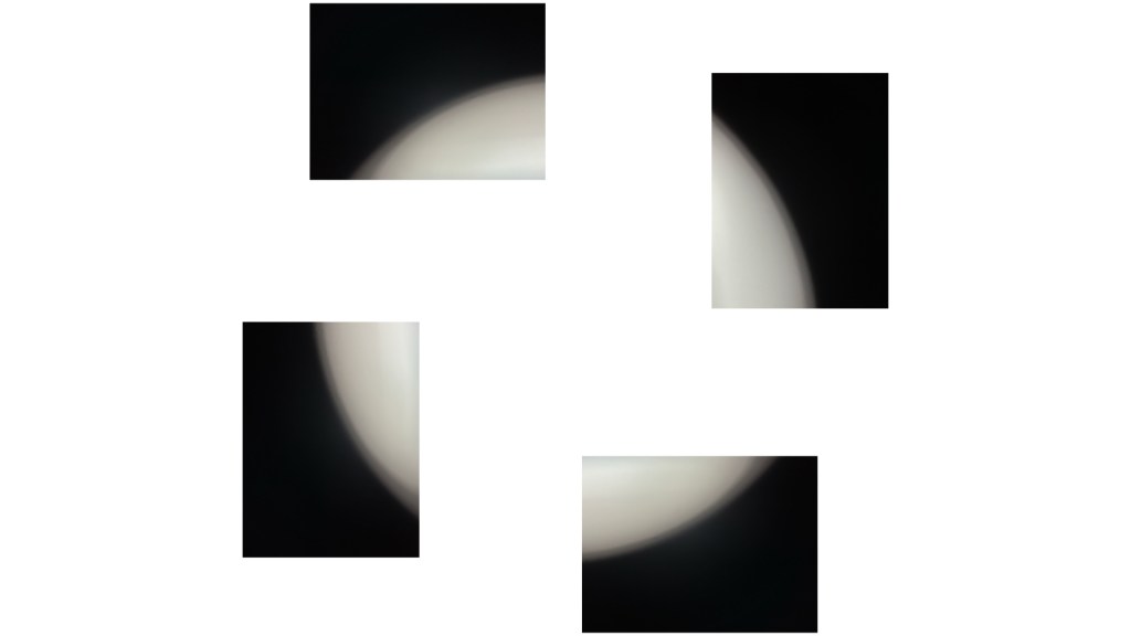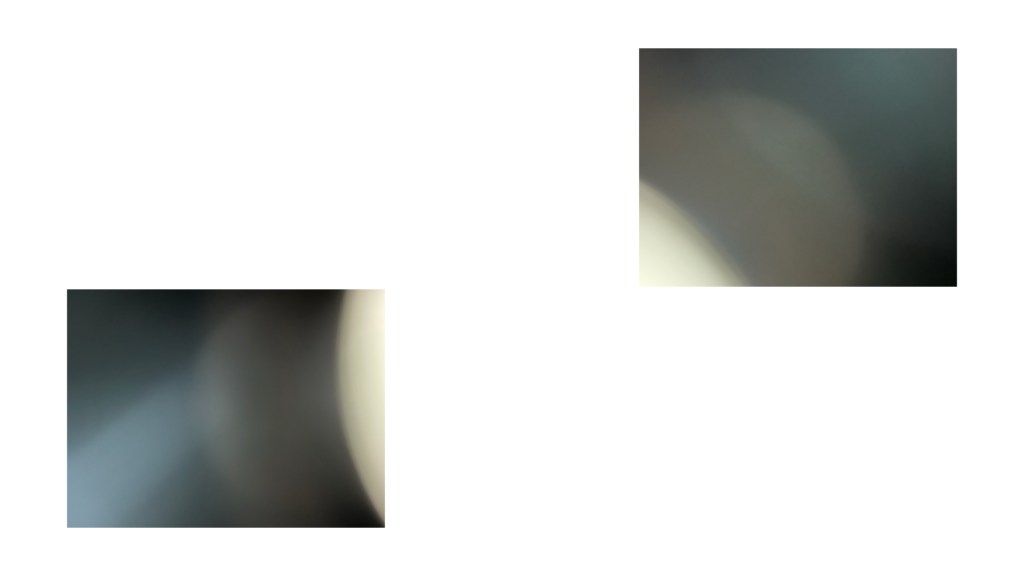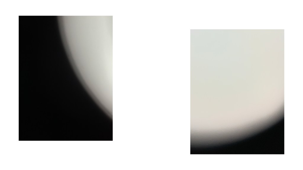 Thinking about optics, I started experimenting with the pinhole element, itself—a small disc made of metal with a hole in the center. I’m working in collaboration with natural light and the pinhole element to create faux landscape/moonscape images and videos by obscuring my iPhone lens. The backdrop is the white ground of my ceiling. The sensor renders soft hues of gray, pink, blue, black, and white…and colors in between, yielding an other-worldly experience. Through these pinhole meditations, light becomes both material and subject. (2026—ongoing)