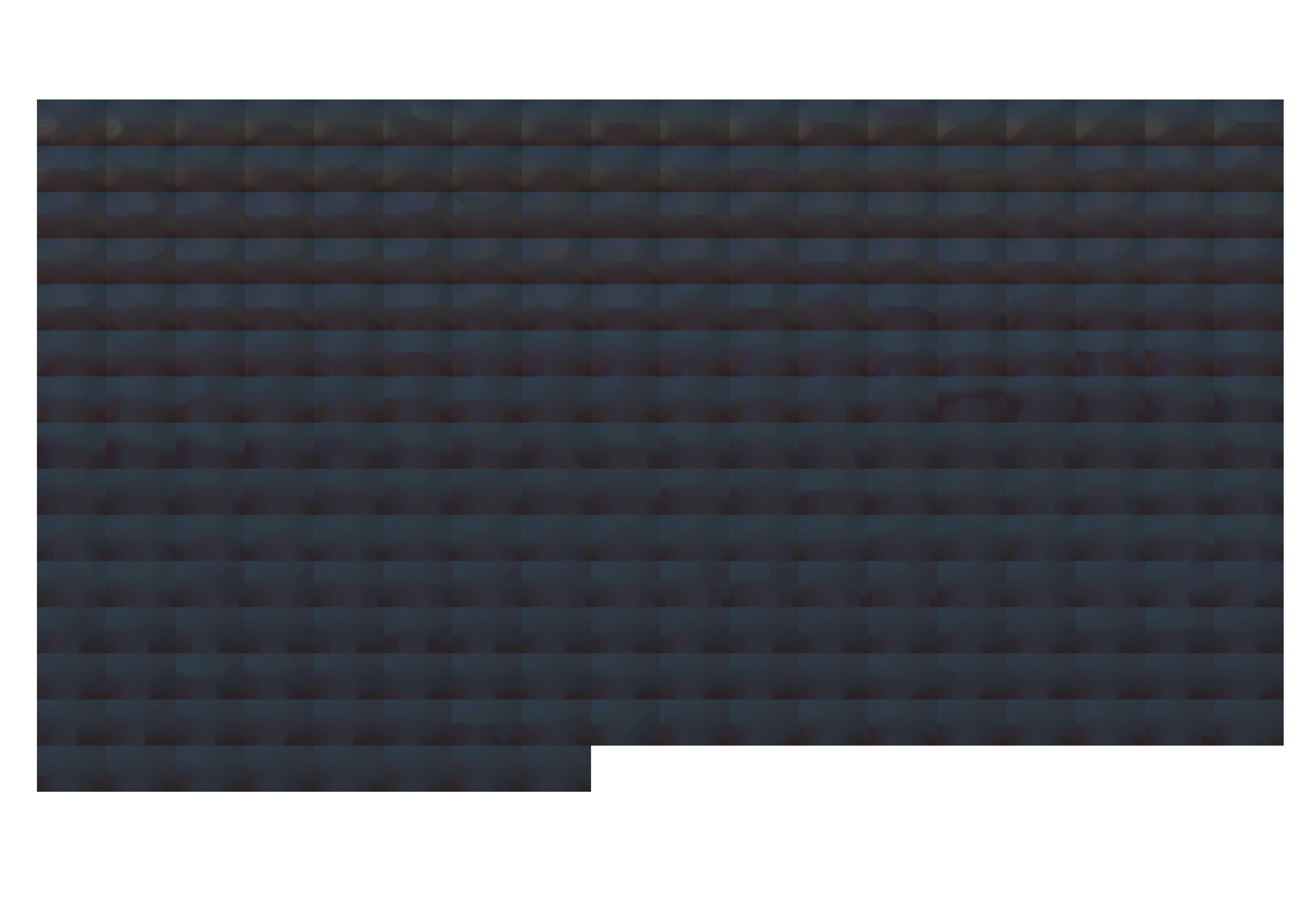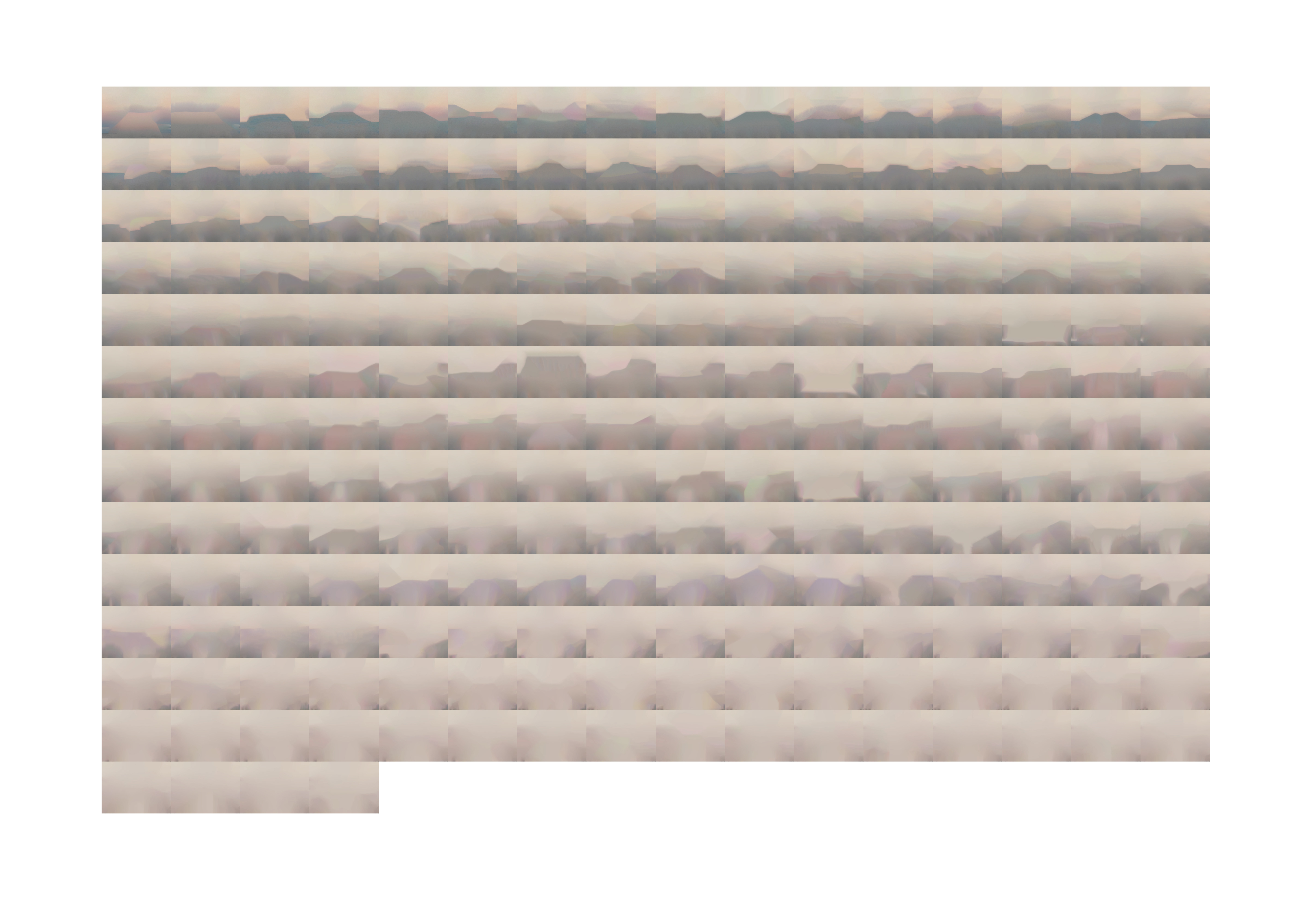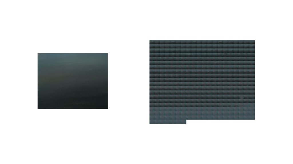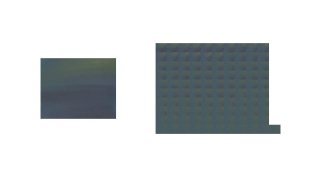 Thinking about photography, I wondered if the resulting grid sequence (read left to right), would be considered photographic or digital art. How far can one push a digital image before it becomes digital art? I’m now working on the edge of photography and digital art. While still following the impulse to remove information from the photograph and this serial and repetitive way of working, I began to think about visual layouts—how this work could lie next my analog work. I immediately thought of the pastel work I made in the Night. project. The pastels are multi-layered and the digital photographs of these pastels reveal a brilliance to the layers of color that only a sensor could render. What would pushing a work made by hand into the digital via digital photography, and then pushing it further in a collaboration with the system reveal? Working with the images of the pastels created a cohesive study of this process.