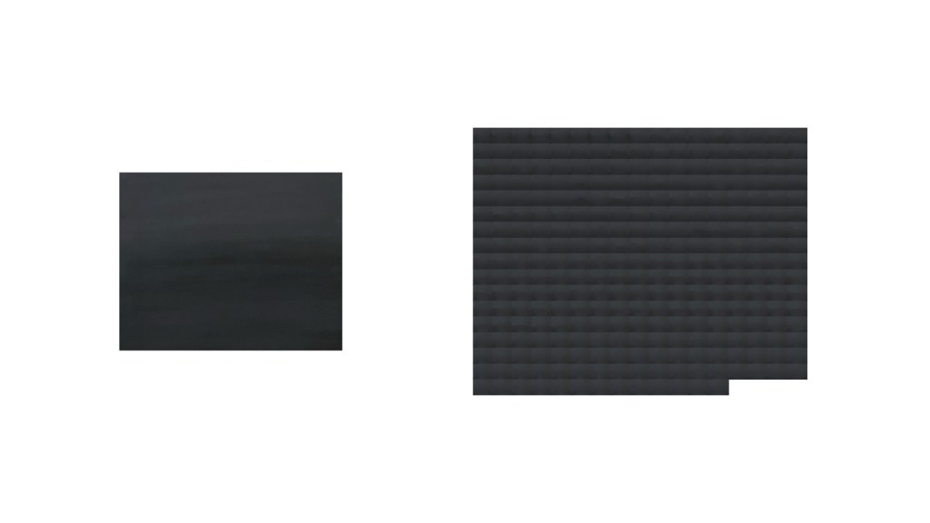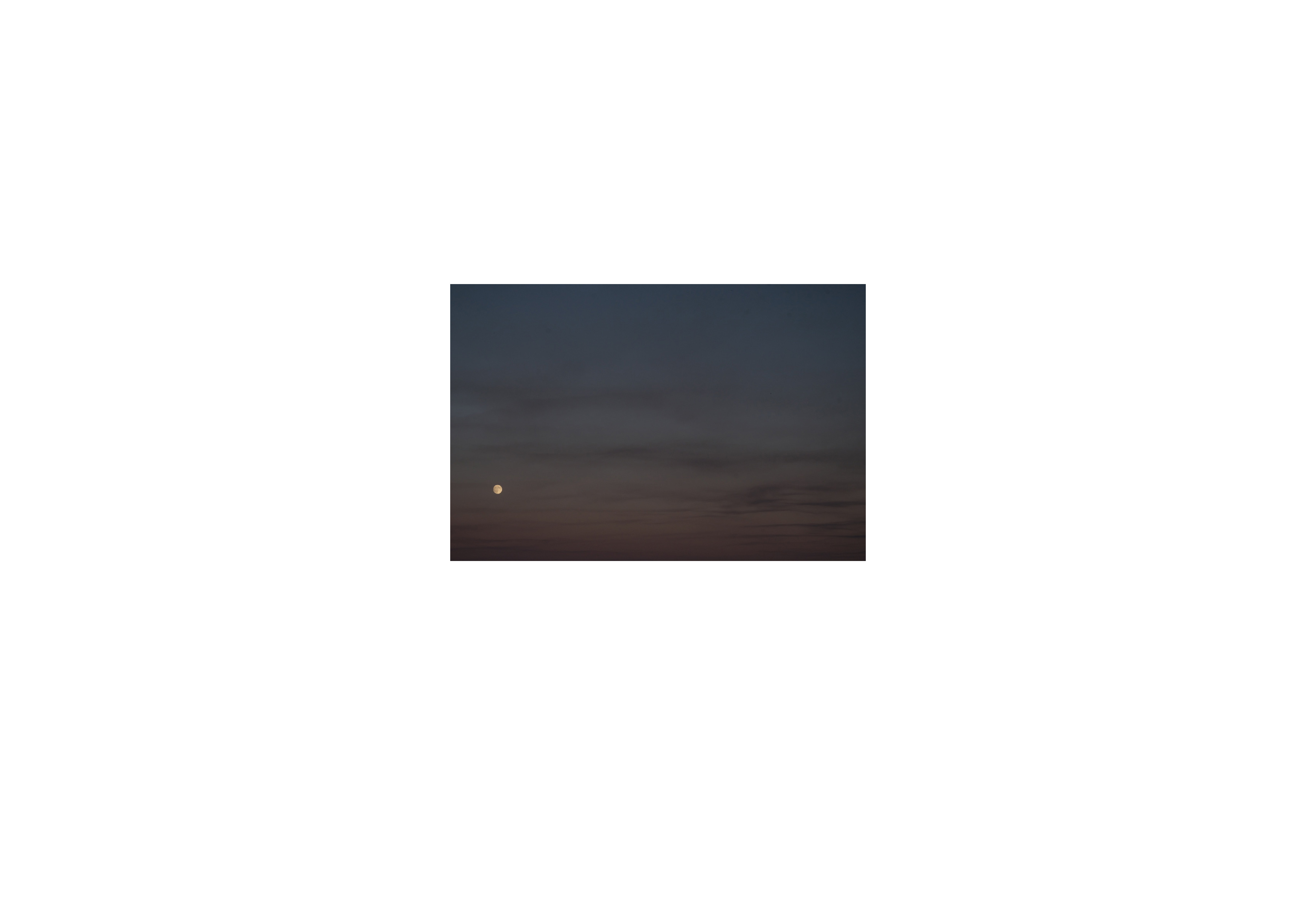 In a further exploration of digital processes and as an extension of my Missing Objects. project, I began thinking about working in collaboration with Photoshop’s AI-driven removal tool. I wondered how many times the tool and I could have a back and forth before one of us crashed. I made 46 images of the full moon from my Chicago window on October 5, 2025. I repeatedly used the remove tool on the full moon image below, leaving a border edge so that Photoshop had information to work with in order to repopulate the pixels I removed (the system wouldn’t allow me to remove the image completely.) This one image, and each iteration after using the removal tool, was sifted through the system 260 times before the system stopped generating new information.